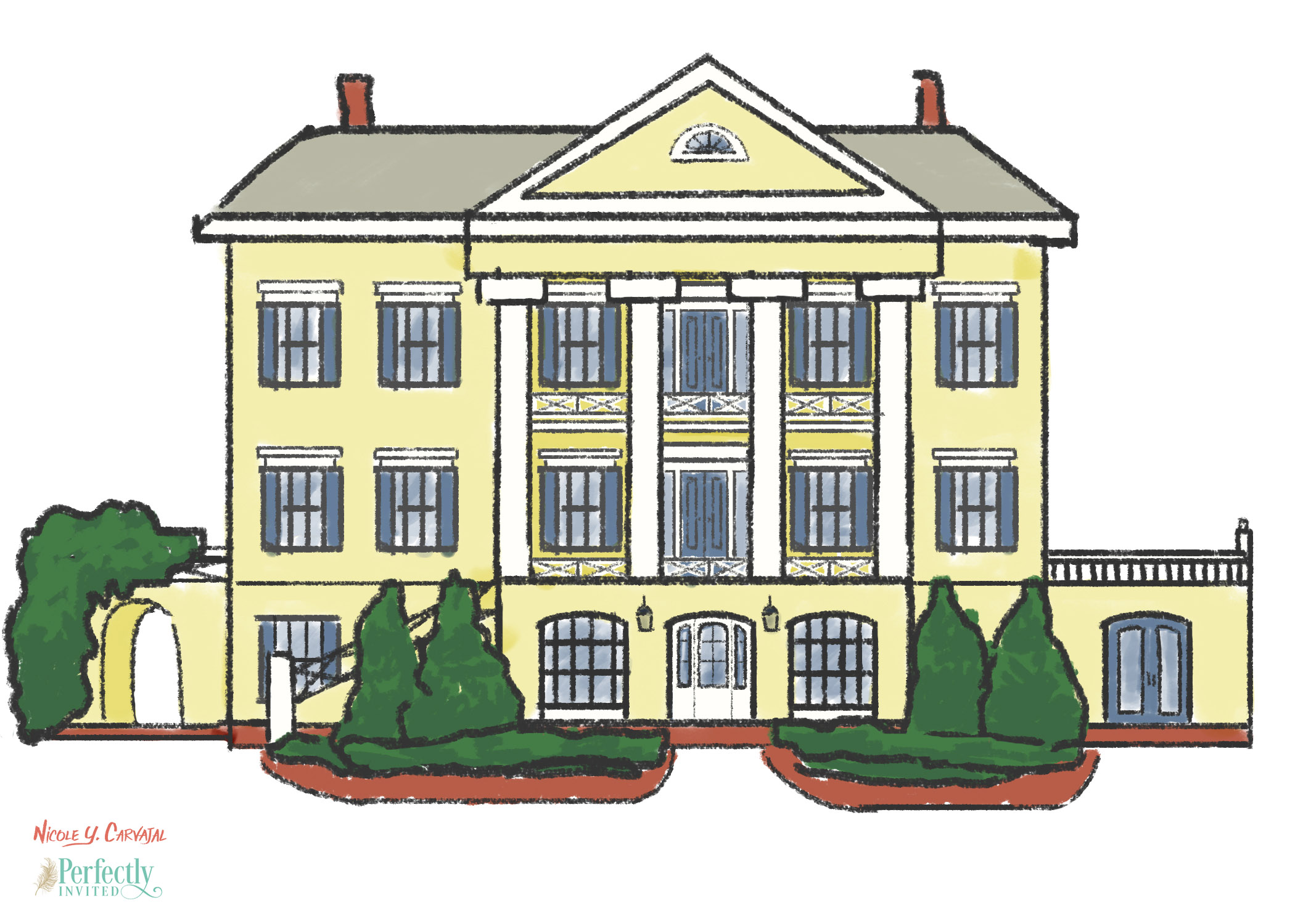 Megan and Benjamin wanted to incorporate bright, whimsical elements into their invitation suite while also highlighting their historical venue. In addition to the graphic design, I created custom illustrations of their ceremony and reception venues.